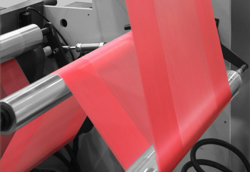 Рукав разрезают автоматическим ножом так, чтобы получились две одинаковые полосы нужной ширины.