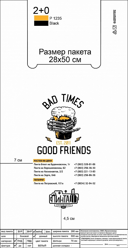 Если Вам нужна разработка дизайна пакета, мы с радостью Вам поможем. Предварительно Вы можете ознакомиться с требованиями, предъявляемыми к макету для флексопечати.
